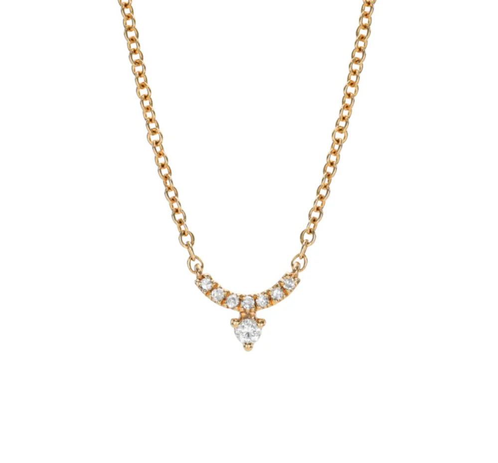 Simple yet impactful, this adorable design features a curved bar of 14k solid gold and all-natural diamonds, with our signature Souli diamond at the crest of the curve. This piece was designed for layering, and is flattering, easy to wear and oh-so-chic.