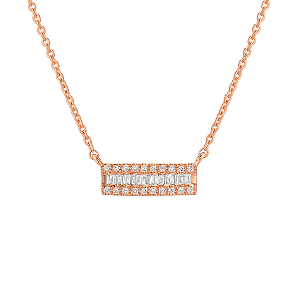 A part of our Heirloom Collection, handcrafted in solid 14k gold with natural conflict-free diamonds, Livenās adjustable 14k gold baguette diamond necklace is beautifully detailed with a row of baguette diamonds framed with two rows of pave diamonds giving the piece gorgeous texture and brilliant shine. Perfect for a bit of understated elegance for the everyday.