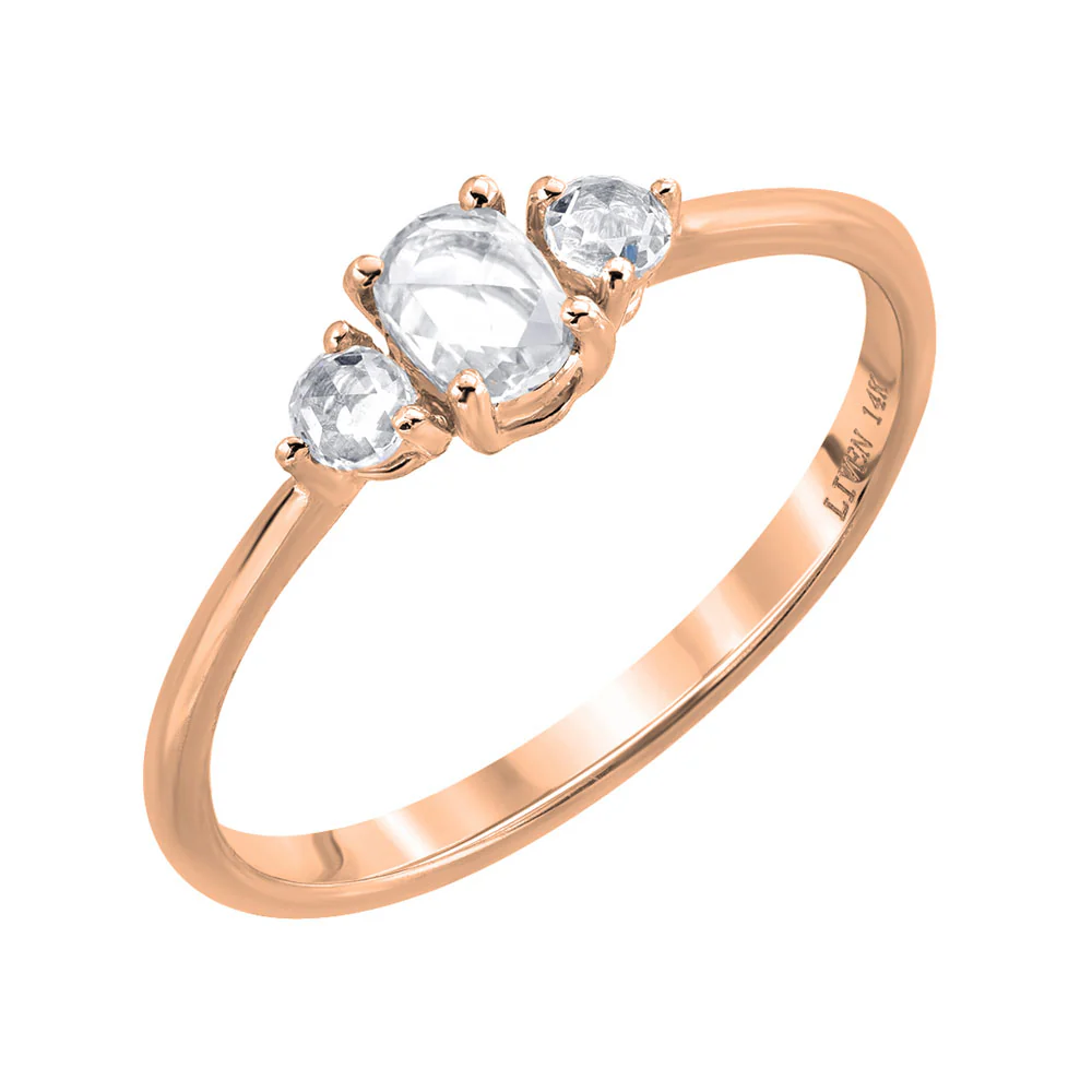 This elegant ring features 3 natural rose cut diamonds set on a high polish solid 14k goldĀ band - simple and beautiful.