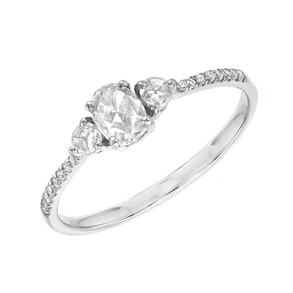 Heirloom Rose Cut Oval and Round Three Diamond Band