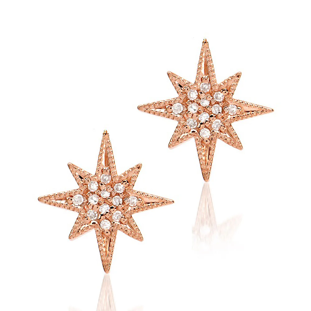 These stylish studs are set in solid 14k gold and feature natural, conflict-free diamonds. The starburst represents creation, inspiration, the spark that ignites, as well as the divine celestial. Add this earring to your wardrobe today!