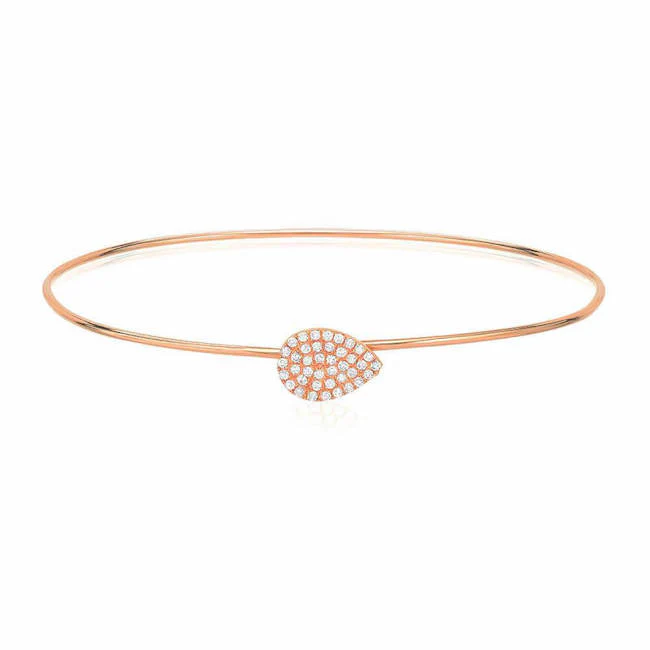 14k gold pear-shaped motif bangle with hand set natural diamonds. These hook bangles begin with a hand-pulled, solid 14k gold wire, lovingly shaped and topped with a sparkling motif. We can make this style of bangle with almost any of our existing motifs - pleaseĀ reach out to us with your ideas for a custom quote!