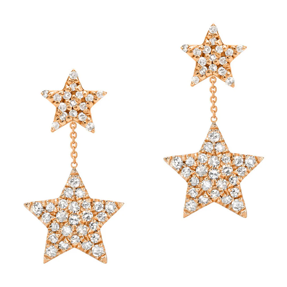 These terrific posts are a great way to add subtle movement to your everyday look. Wear alone for a dressy style, or add more in your other holes for a cool, edgy look. Each pair features ethically sourced natural diamonds set in 14k rose, white or yellow gold, with the two stars connected by a mini length of dainty thin chain.