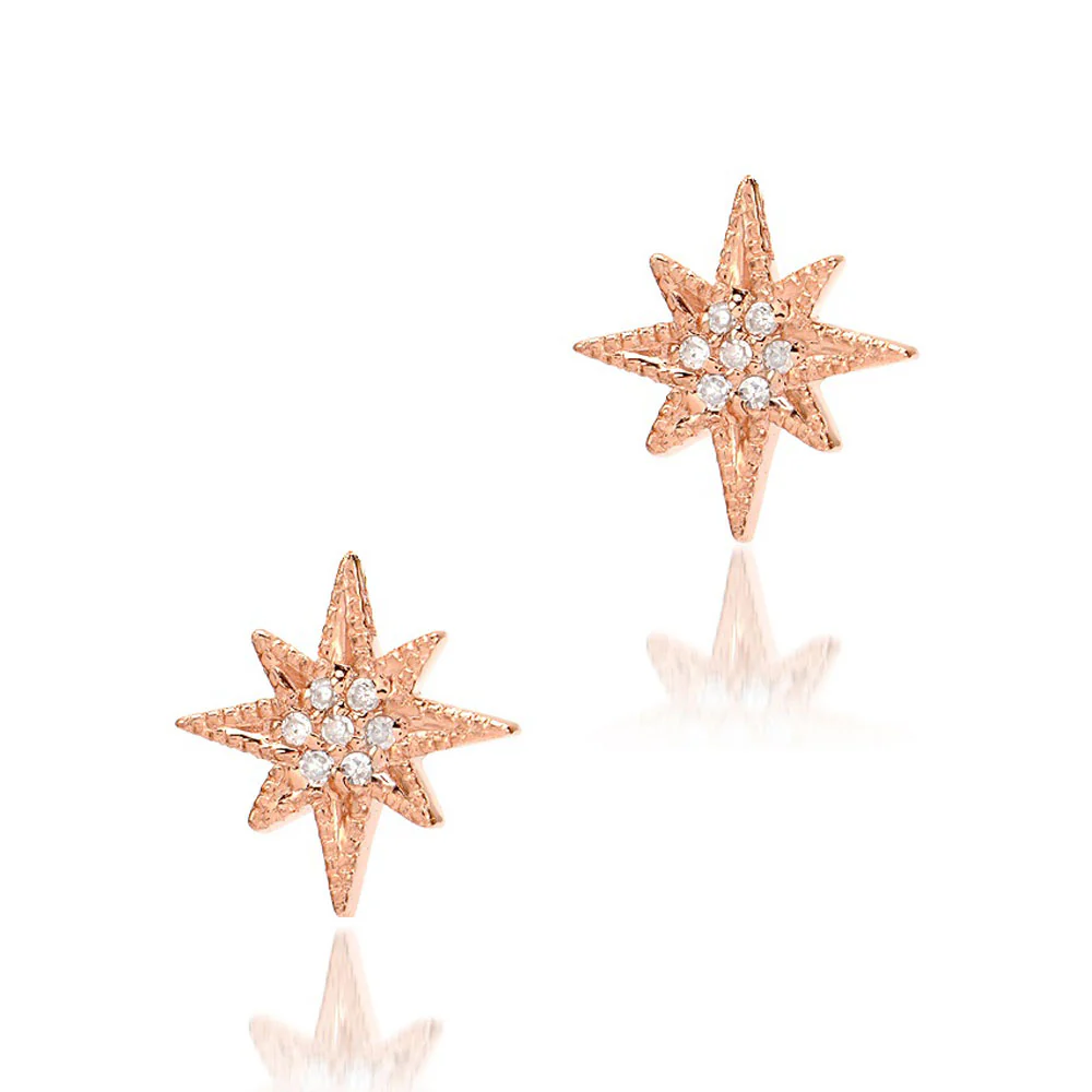 These cool medium-sized starburst studs are set in solid 14k gold and feature natural, conflict-free diamonds. This style is designed to invoke the night sky, and all of the inspiration, awe and fascination we well when we experience it. Add this infinitely wearable starry earring to your collection today.
