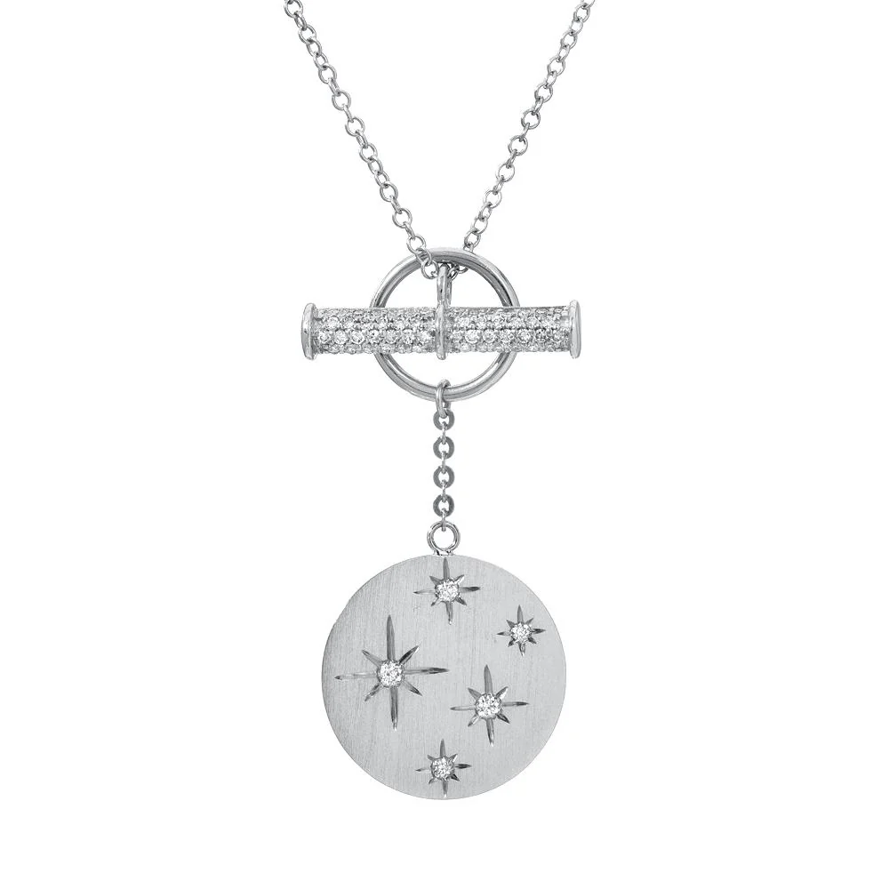 This extra-special necklace is so versatile! It features a diamond-encrusted T-bar toggle floating on an adjustable chain - wear it at 20, 22, 24 or 26" length - with a satiny brushed gold and diamond charm hanging securely from the end. The charm is removable, so you can wear it with your other pieces, or you can add other charms to this necklace for a bohemian look. Handmade in solid 14k gold with natural diamonds.