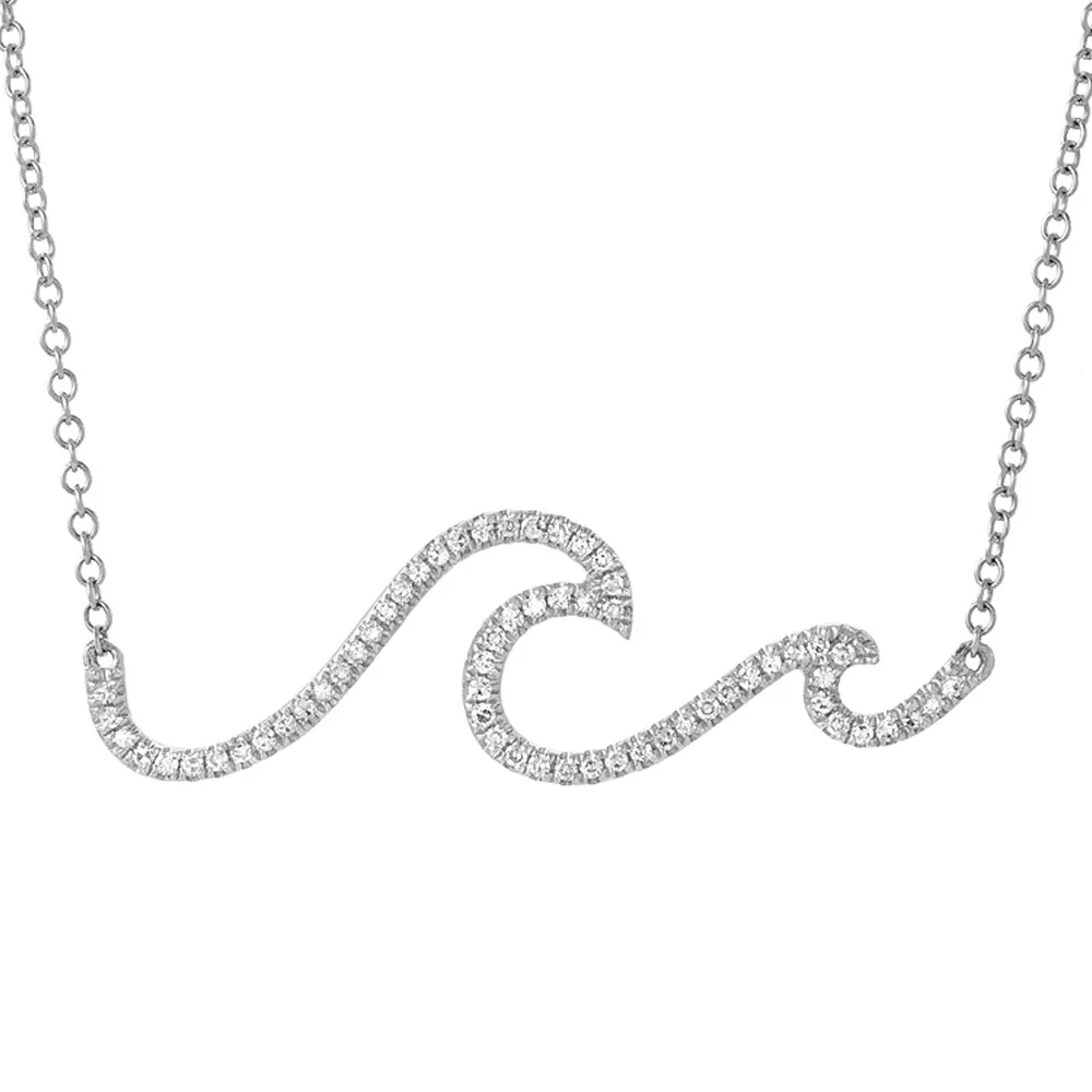 Born from a love of Hawaii, the Aloha Collection evokes the mood of the islands and the gentle vacation aloha. This necklace features a solid 14k gold and natural diamond wave form hanging from a 16-18" chain. Approximate length of wave: 34mm.