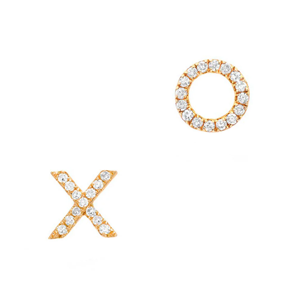 Hugs and Kisses! These solid 14k gold XO stud earrings feature 29 hand set natural diamonds. A petite version of this earring is also available - click here to view it.